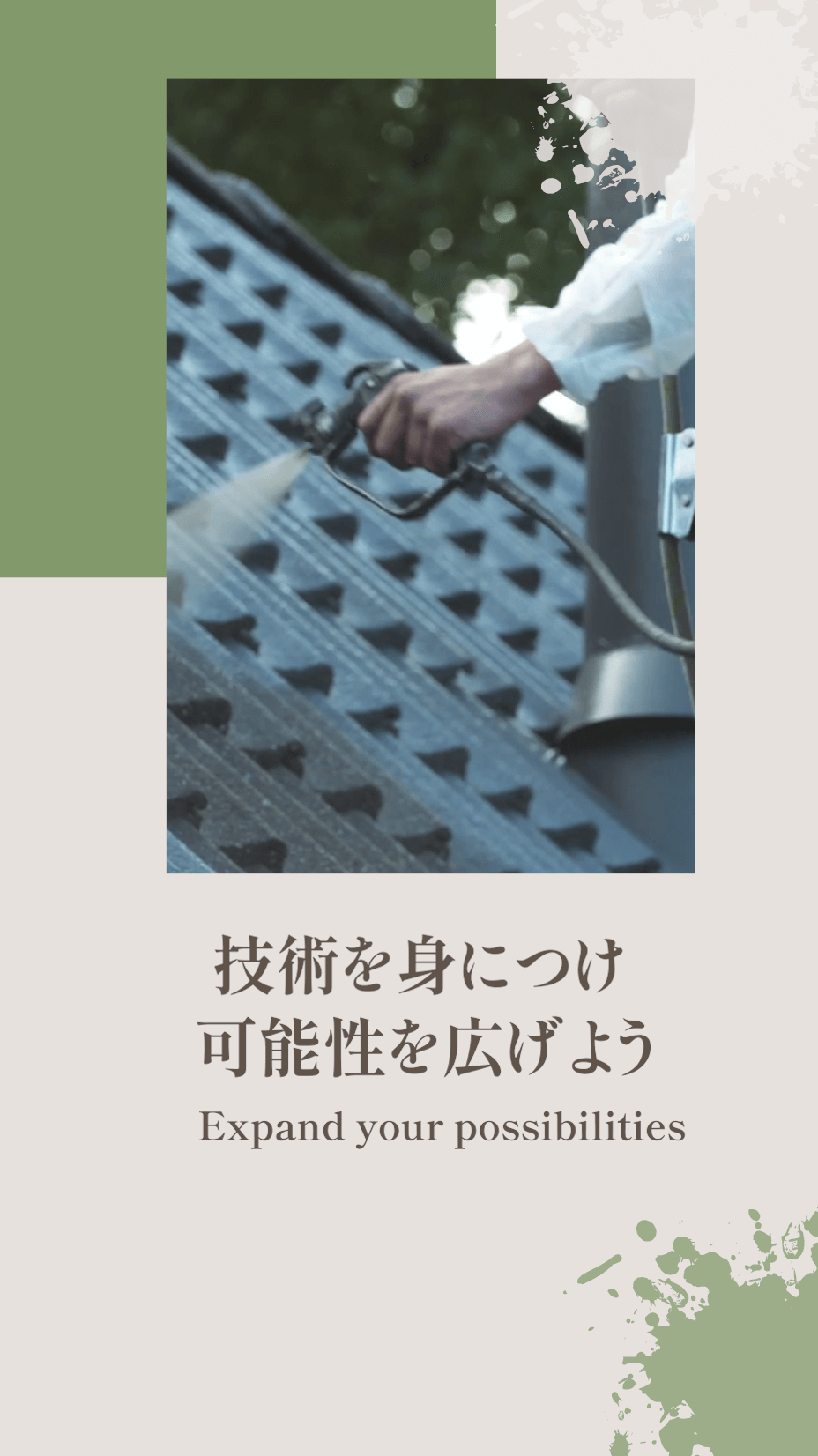 また、塗装工事会社としてのノウハウも余すことなくお伝えしておりますので、将来独立願望がある方は、ぜひ当社にご応募ください。